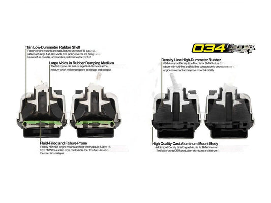 034Motorsport Street Density Engine/Motor Mount Kit 60A Upgrade - BMW F20 F21 F22 F23 1/2 Series, F30 F31 F32 F33 F34 F36 3/4 Series, F87 M2, E90 E92 E93 M3 - Uprated Rubber Performance OE Replacement Set