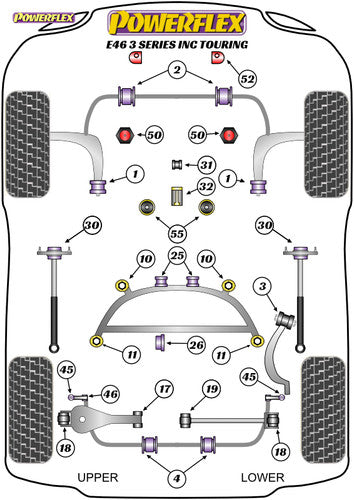 BMW E46 3 Series Front Sway/Stabiliser/Stabilizer Bar Bushes 22.5mm (Incl Touring/Estate) – Powerflex Black Series Polyurethane ARB Mounts – Track/Fast Road Anti-Roll Bar Bushing Kit – PFF5-4602-22.5BLK