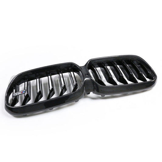 BMW F8X M3/M4 F80 F82 F83 Carbon Fibre/Fiber Kidney Grilles - Gloss Carbon Double Slat Competition Style Front Grill Upgrade | OEM Fit Replacement 2014-2020 | M Performance Nose/Radiator Grille Set