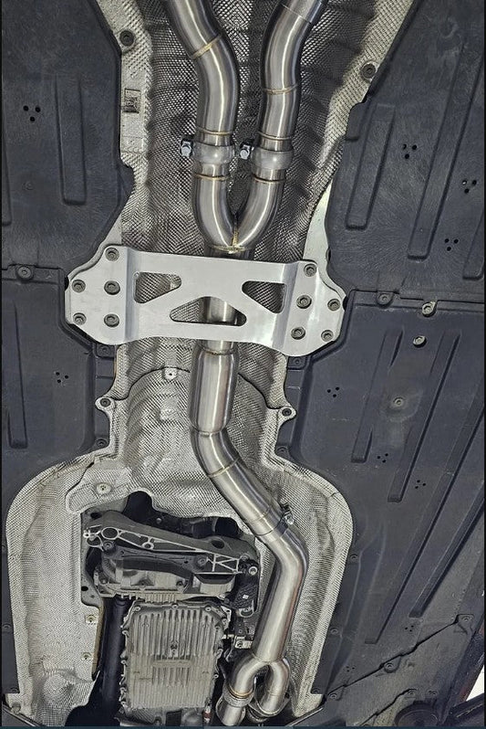 BMW G8X M3/M4 Single Merge Midpipe/Y-Pipe – Resonated Center/Centre Section 3.5in (89mm) 2-into-1 Exhaust Link Pipe, OPF/GPF & Center Silencer/Mid Box Delete, Larger Mid Brace – Fits G80 G81 G82 G83 S58