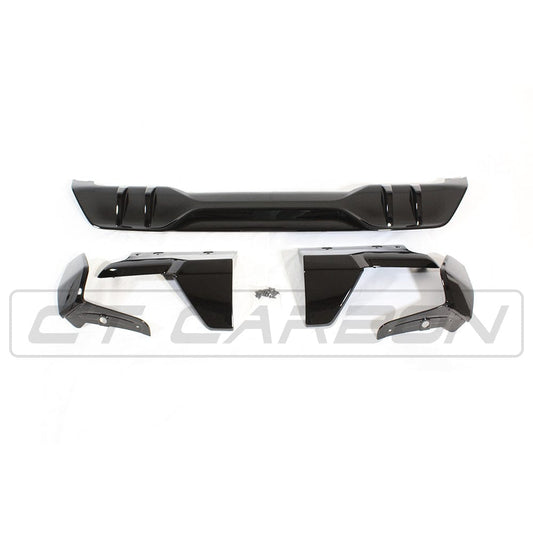 BMW X5 G05 2018-2024 Full Black ABS Plastic Body Kit – Gloss/Piano Black Exterior: Front Splitter Lip, Twin Boot Spoiler, Rear Diffuser Valance, Side Skirt Extensions | Aero Styling Pack | Shadowline Black Pack by CT Carbon