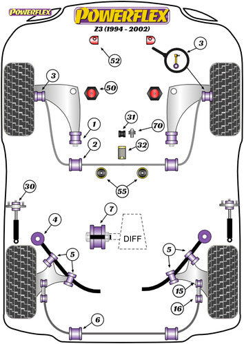 Powerflex Black Series Front Lower Control Arm Rear Bushes for BMW Z3 1994-2002 - PFF5-3603BLK (E46 Hybrid Alloy Wishbone Conversion, E30/E36 Lollipop Carrier) Polyurethane Polybush Anti-Deflection, CNC Aluminium Outer - Track/Fast Road Pair