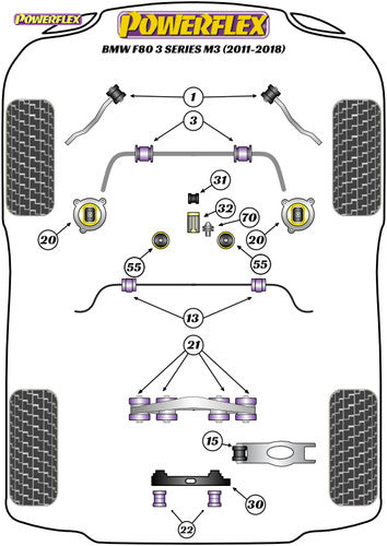 Powerflex Black Series Rear Diff Front Mounting Bush Set (2) PFR5-425BLK for BMW F20 F21 F30 F31 1/3 Series 95 Shore Polyurethane OEM 33176760287