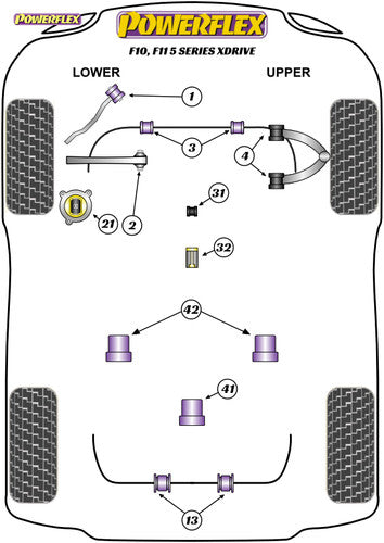 Powerflex Front Lower Control Arm/Wishbone to Chassis/Arm-to-Body Bush Kit for BMW 3 Series F30 F31 F34 (Saloon/Touring/GT) - Polyurethane Wishbone Rear Bushes - PFF5-1902 Pair - F3x Suspension Bushing Upgrade - Replaces 31126852991 31126852992