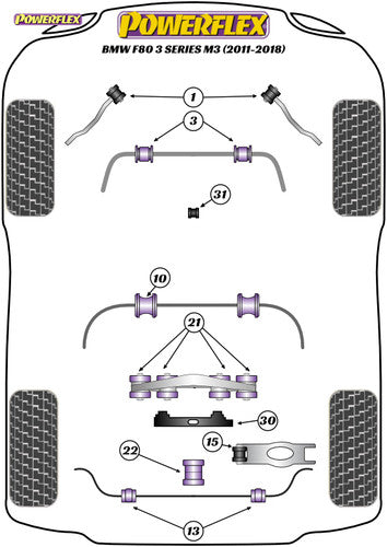 Powerflex PFR5-4025 Rear Diff Front Mount Bush/Bushing Kit (4pc) - BMW M3 M4 F80 F82 F83 F8x 2014+ - Polyurethane Polybush Final Drive Carrier Front Location Mounts - Replaces OE 33172284774
