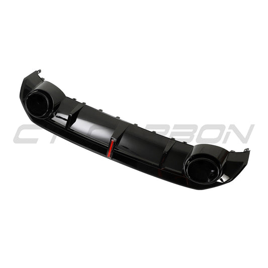 Audi A3 8Y S Line / S3 8Y Rear Diffuser Gloss Piano Black with Exhaust Tips/Tailpipe Finishers & LED Centre Light | Rear Valance Apron Bumper Insert Splitter | 2020+ ABS OEM+ Styling
