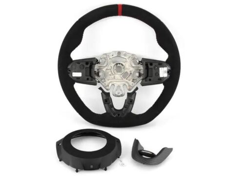 Genuine MINI JCW Pro Alcantara & Open-Pore Carbon Fibre D-Shape/Flat-Bottom Steering Wheel Rim (Outer Rim Only) F54 F55 F56 F57 F60 (Hatch/Clubman/Convertible/Countryman) – Cooper S & John Cooper Works – Paddle Shift/Steptronic Auto – OEM 32302364770