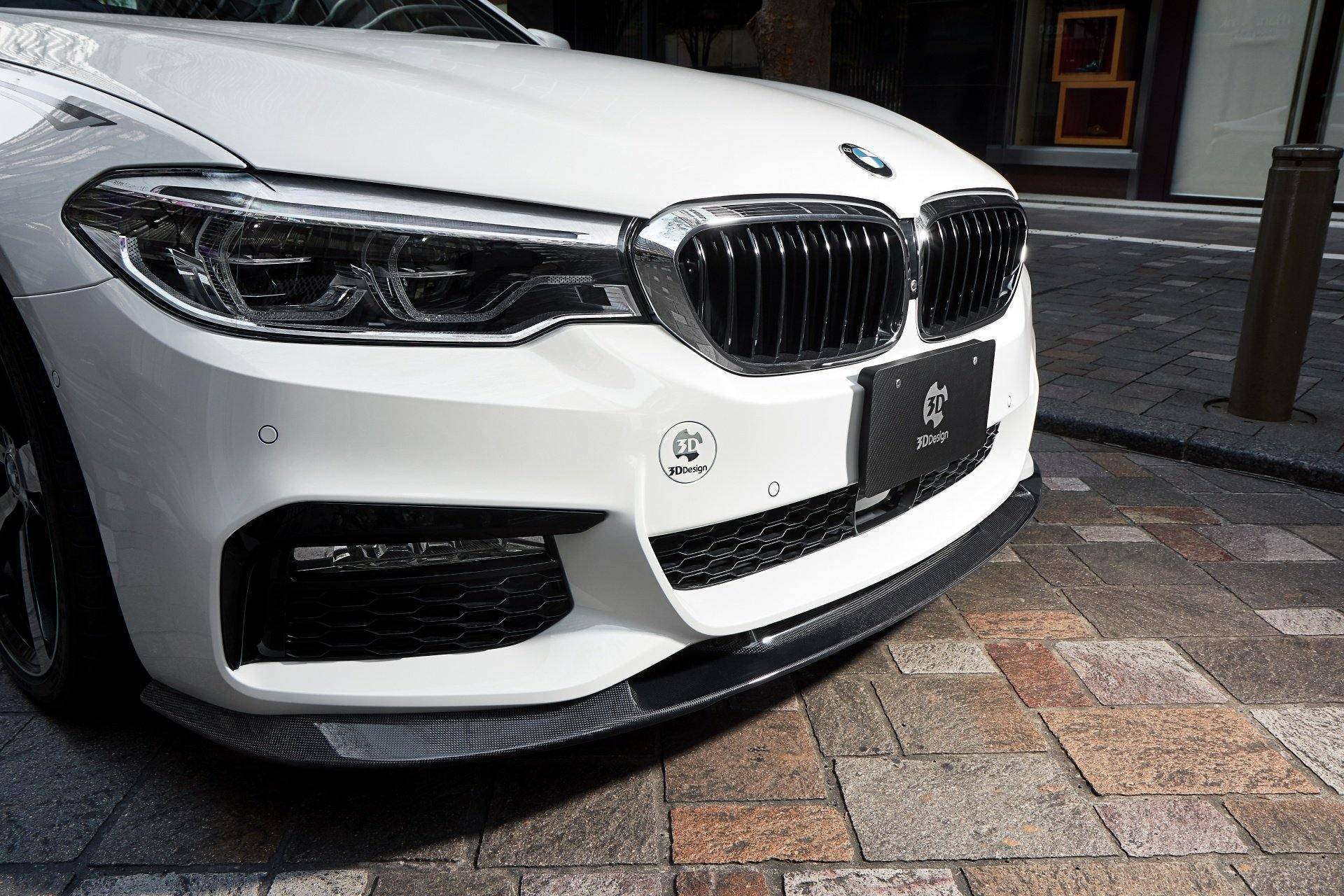 BMW G30 front lip, G31 Touring chin spoiler, 5 Series M Sport lower lip, carbon fibre bumper lip, carbon front spoiler blade, front splitter lip kit, aero lip for BMW 5 Series, front valance extension, performance styling for G30 G31, pre facelift 5er M Paket front lip, OEM plus carbon upgrade, gloss carbon lower splitter, BMW 5 Series saloon and estate front lip 2017 2018 2019, premium carbon weave front bumper extension, Japanese styling by 3DDesign.