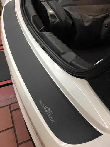 Finished in a sleek satin black with a subtle grey AC Schnitzer logo, the contoured panel follows the shape of the boot lip for a tidy, factory-style finish. It installs cleanly with an adhesive backing, no drilling required, and gives you the confidence to use the car as intended without marking the paintwork.