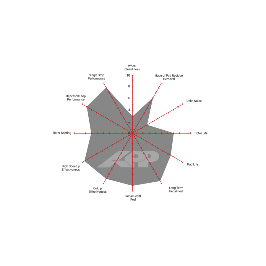Kevlar and metallic composite friction delivers a wide operating range of 35°C to 760°C with an approximate coefficient of friction of 0.40 to 0.68. Expect crisp initial response, progressive control and excellent release characteristics for trail braking and balanced modulation. As with many high-performance linings, some brake dust and occasional noise may be present on certain vehicles.