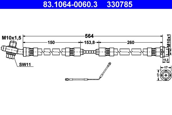 Refresh the stopping system on your BMW X5 E53 with this ATE OE-spec flexible hydraulic line, part number 83.1064-0060.3. Designed for the E53 platform built from 1999 to 2006, this premium rubber hose features factory-style M10 x 1 connections and a 570 mm length for a direct-fit solution that helps restore confident, consistent braking.