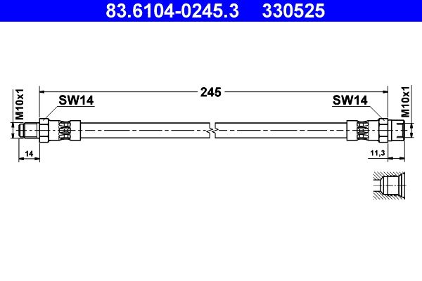 BMW Z1 E30 flexible brake line, Z1 Roadster brake flexi pipe, ATE 83 6104 0245 3, ATE 83610402453, 83-6104-0245-3, OEM brake hose BMW Z1, hydraulic flex hose M10x1, 245 mm brake flex line, caliper feed hose BMW Z1, OE spec brake pipe Z1, factory fit brake line E30 Z1, replacement flexi hose BMW Z1 Roadster, ATE OE brake line Z1, M10 x 1 metric threaded brake hose, BMW Z1 hydraulic line to caliper, direct replacement brake flexi BMW Z1.