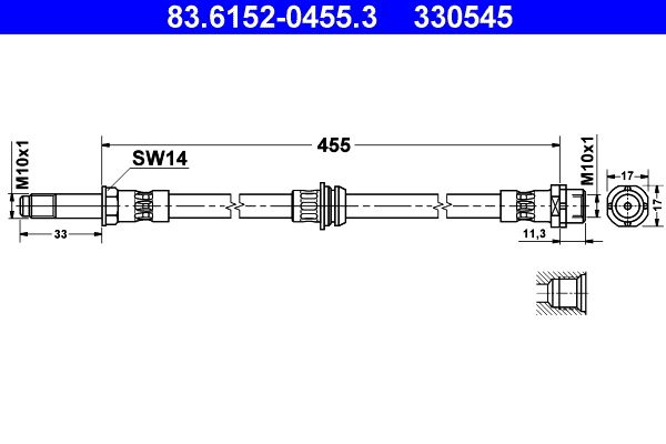 Upgrade your braking feel and reliability with this premium ATE flexible hydraulic hose, part number 83.6152-0455.3. Engineered for 3 Series BMW applications that require a 455 mm hose with M10 x 1 fittings, this OEM-grade rubber flexi line delivers crisp pedal response, consistent performance and a secure seal at the unions.