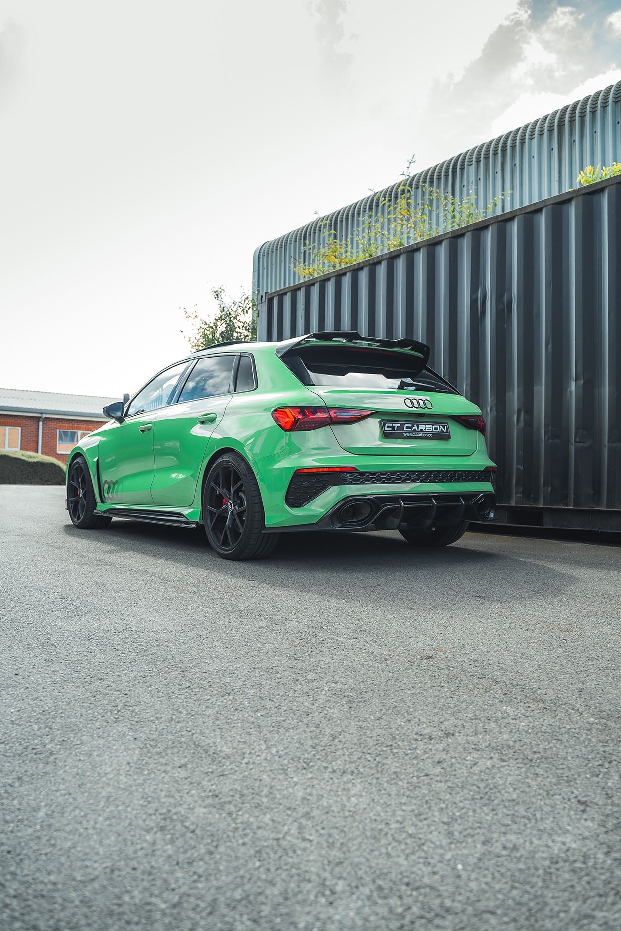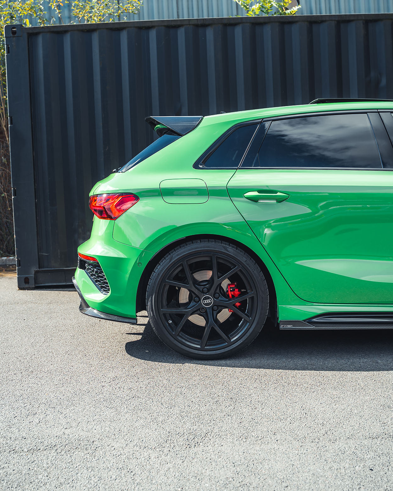 CT Design side skirts for the new Audi RS3 8Y made from Pre-Preg carbon fibre in an aggressive 4 piece design.
