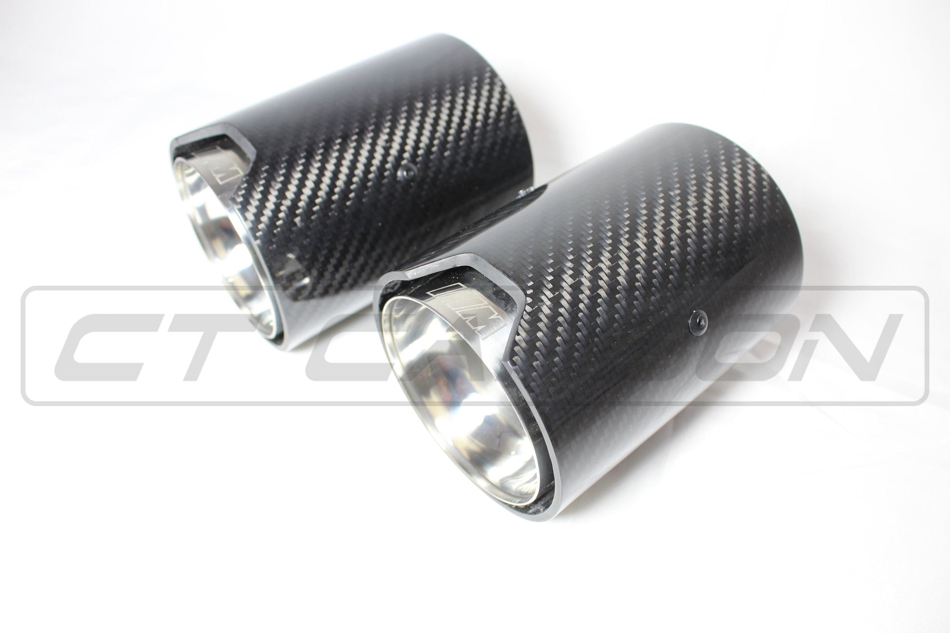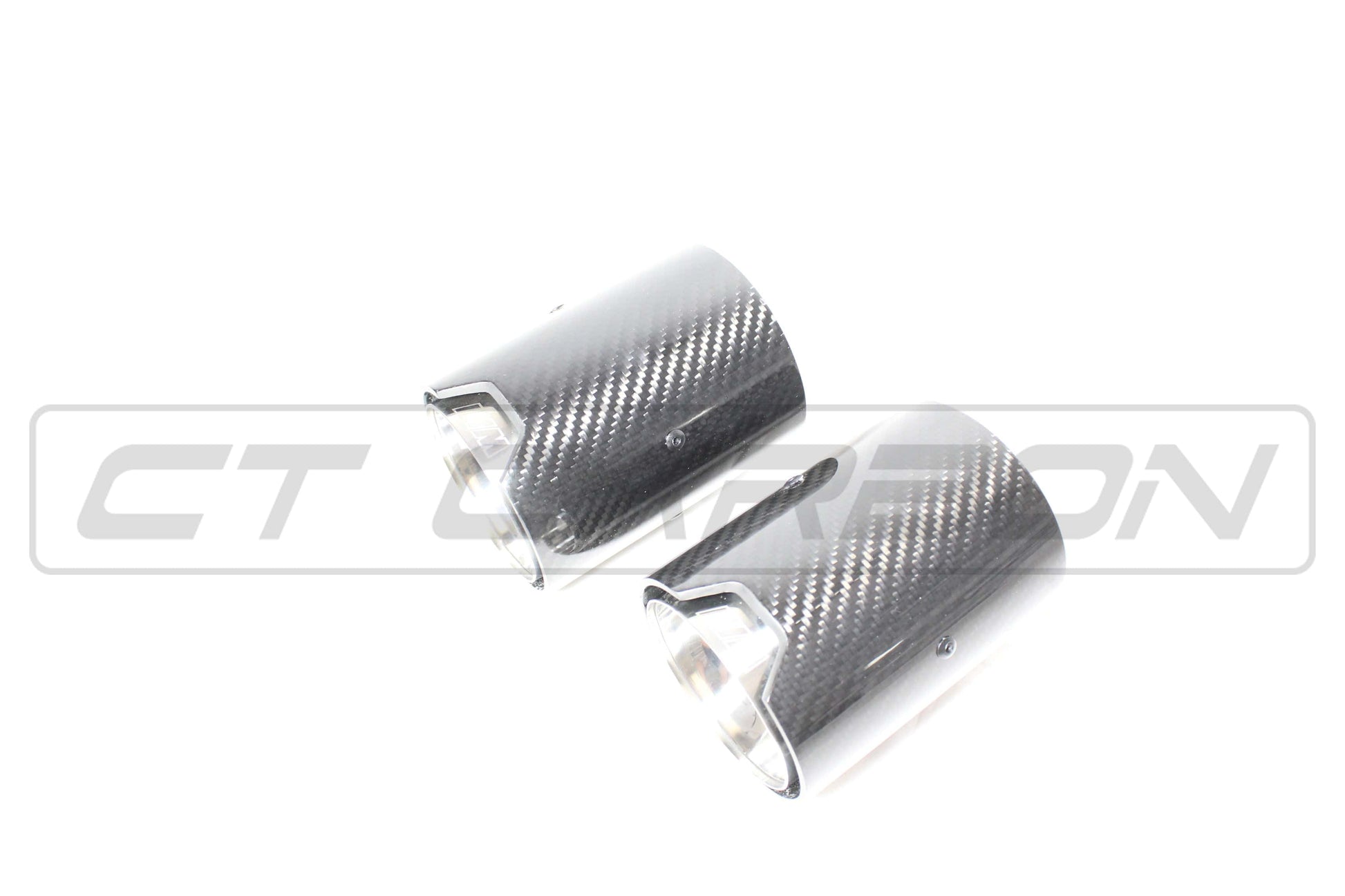 Carbon tailpipe trims, tail pipe finishers, muffler tips, exhaust outlet covers, back box tips, end pipes, BMW F20 F21 F22 F23 F30 F31 F32 F33, B58 N55 tail trims, 135i 140i 235i 240i 335i 340i 435i 440i carbon fibre chrome.