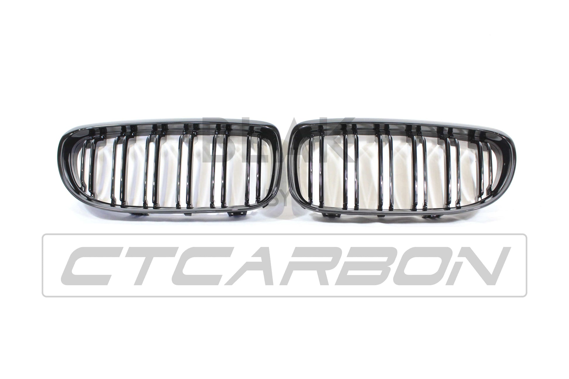 BMW 3 Series E90 E91 LCI 2008-2011 Black Kidney Grilles Pair - M-Style Double/Twin Slat Front Grill Replacement Set for Facelift Saloon/Touring/Estate - Shadowline De-Chrome ABS - CT Carbon