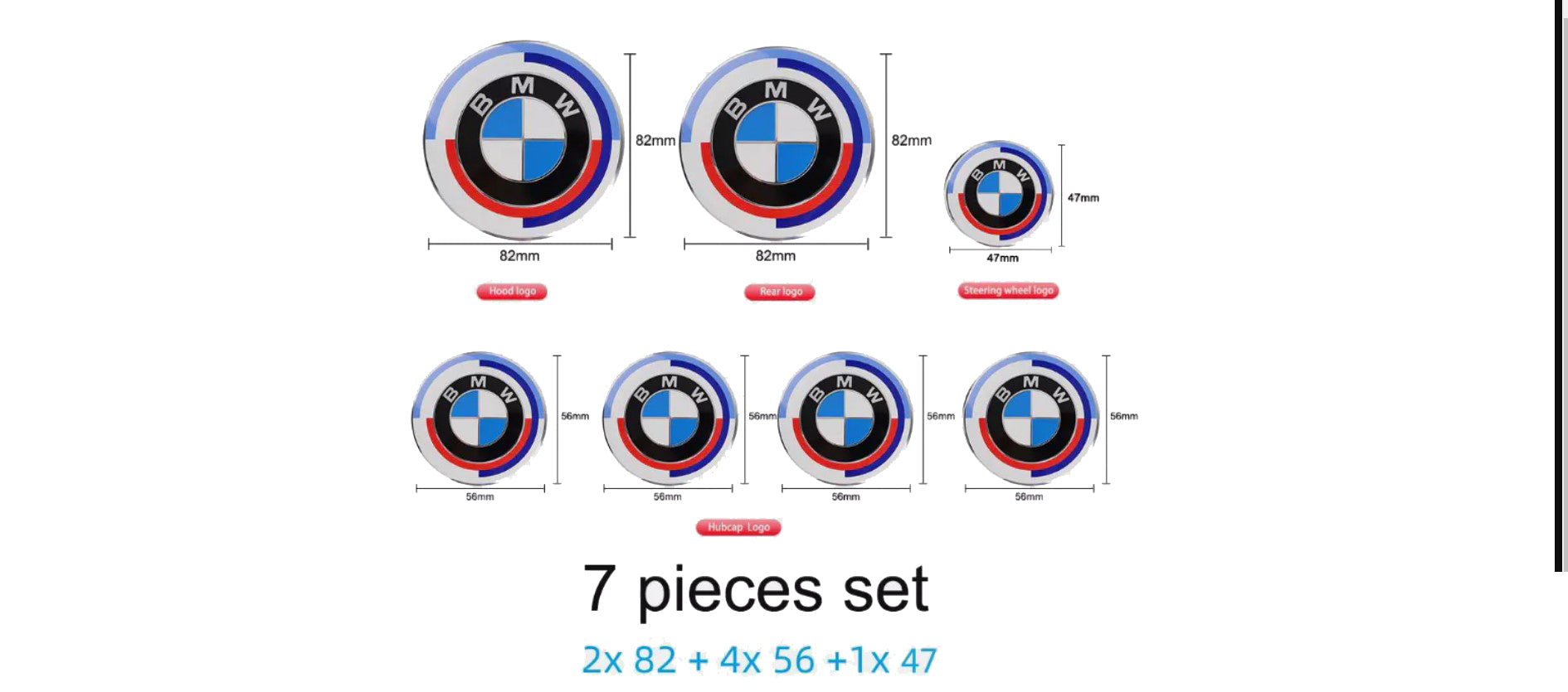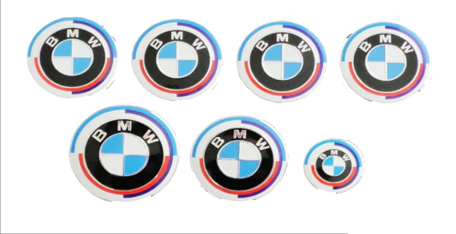 BMW Emblem Badge for Centre Cap Bonnet Trunk 7pc 68mm 74mm 82mm