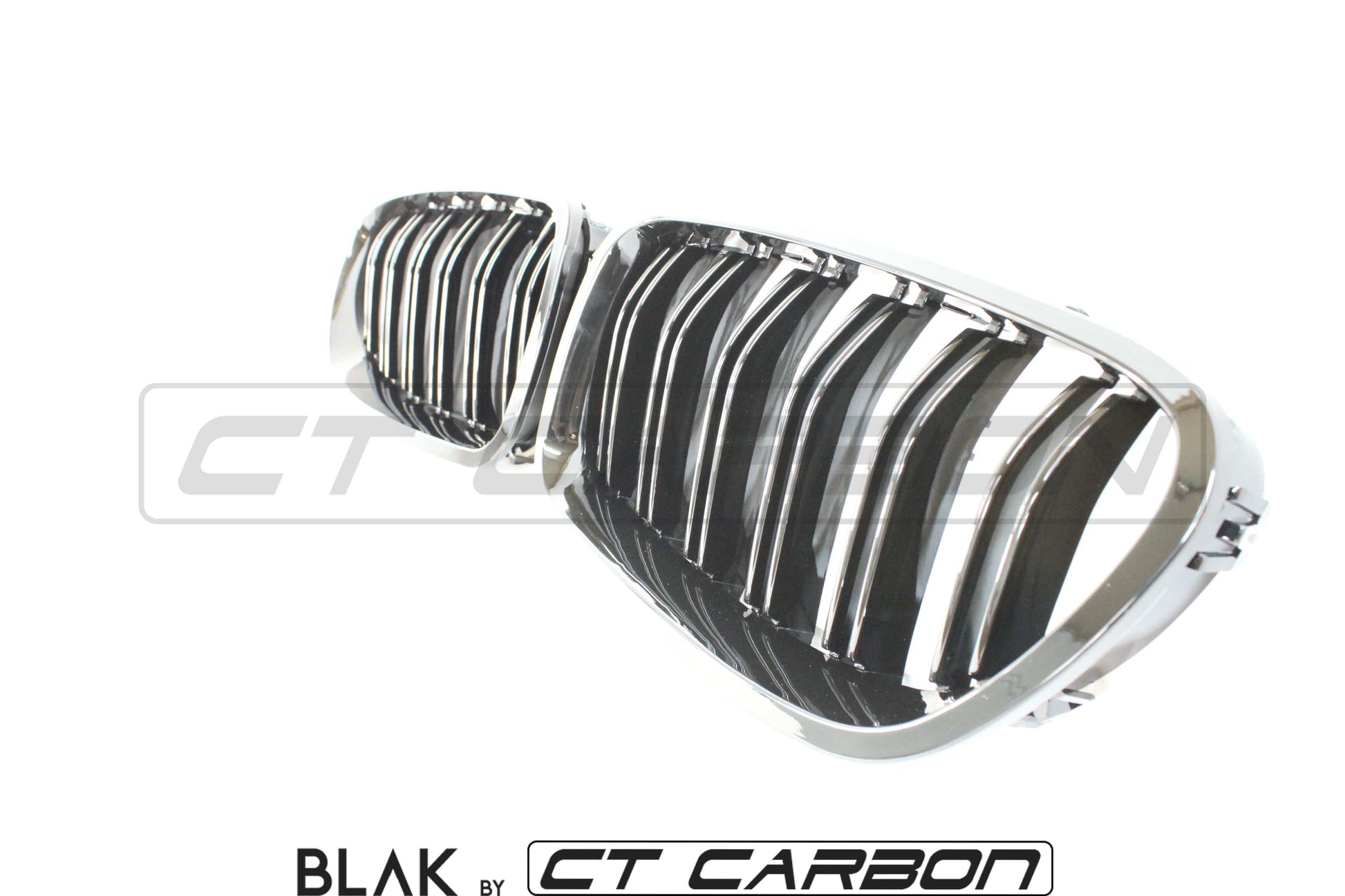 BMW F10 5 Series Saloon (2009-2017) & M5 (2011-2016) Black Double Slat Kidney Grilles | Shadowline Blackout Dechrome Front Grill Set, Left & Right | ABS Replacement | BLAK by CT Carbon