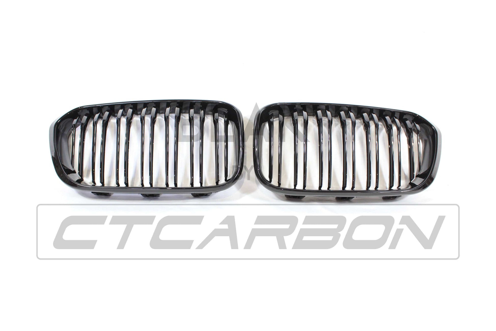 Transform your 1 Series front end with a piano black twin‑bar kidney set