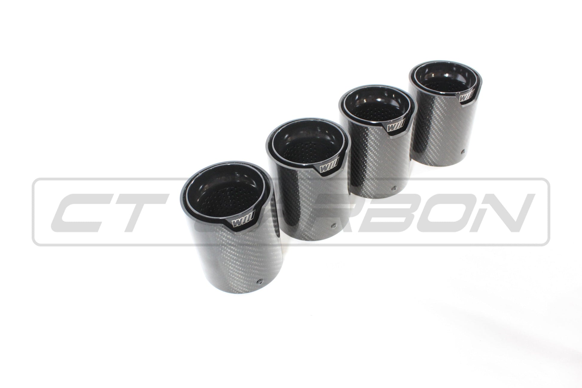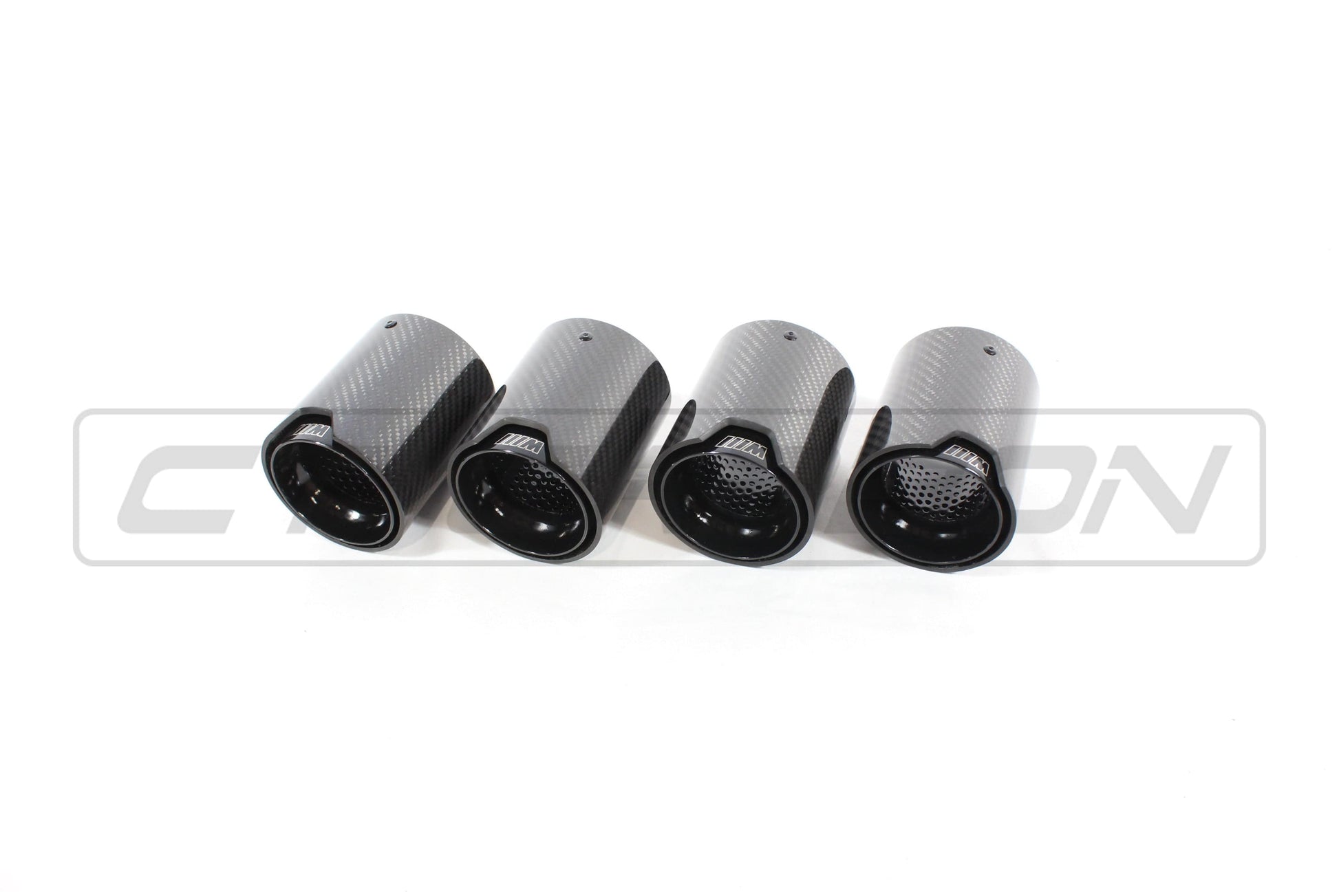 BMW M5 F90 & M8 Carbon Fibre/Carbon Fiber Exhaust Tips – Gloss Black Quad Tailpipe Finishers (Set of 4) | Tailpipe Ends, Tip Covers, Tail Trims, Muffler Tips | 2017+ M5, 2019+ M8