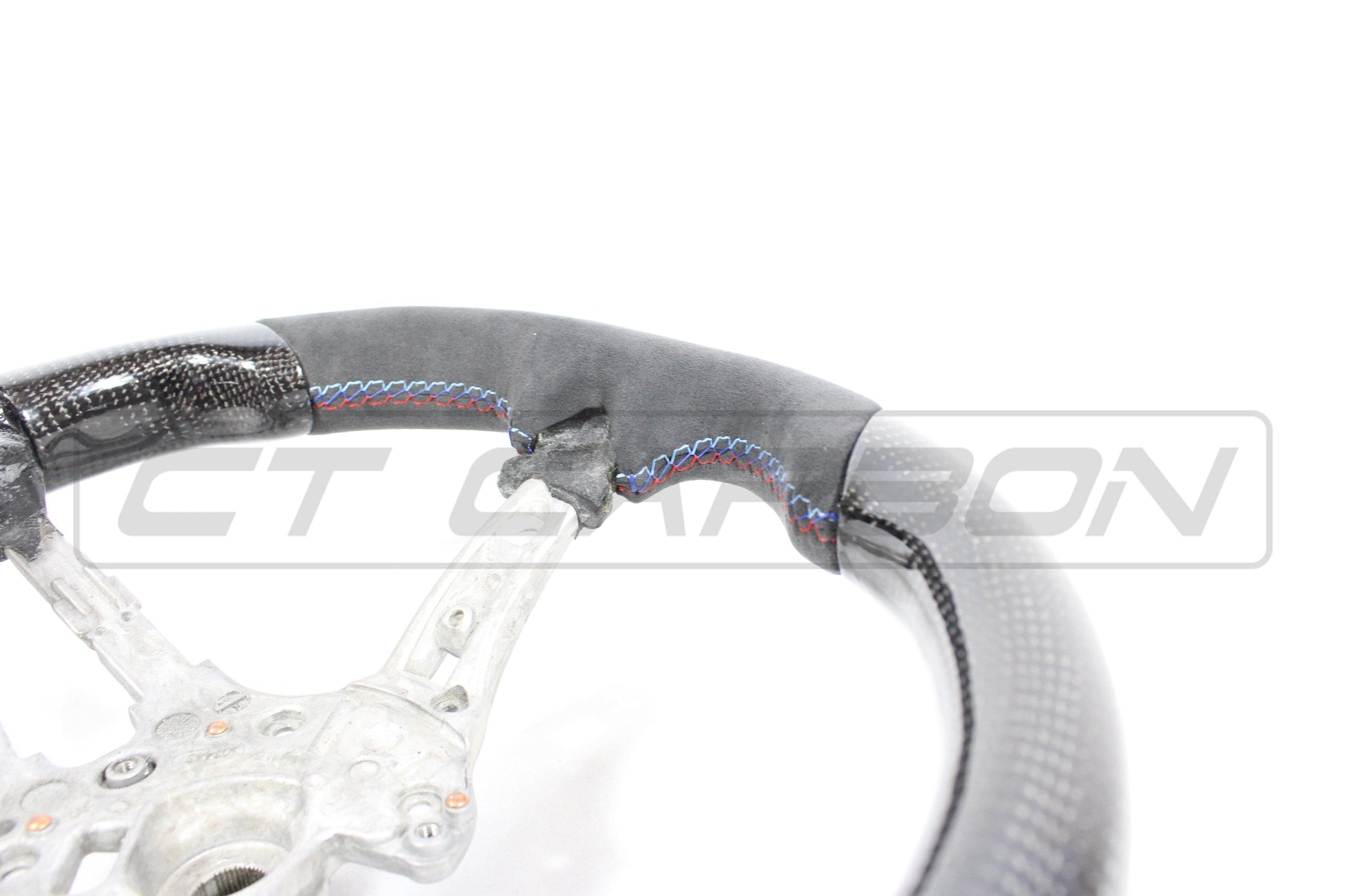 Give your cockpit a true motorsport feel with this premium CT Carbon wheel, built from an authentic BMW core and finished in real carbon weave with Alcantara microfibre. The flat-bottomed profile delivers a purposeful look and confident control, while the craftsmanship and attention to detail elevate every drive.