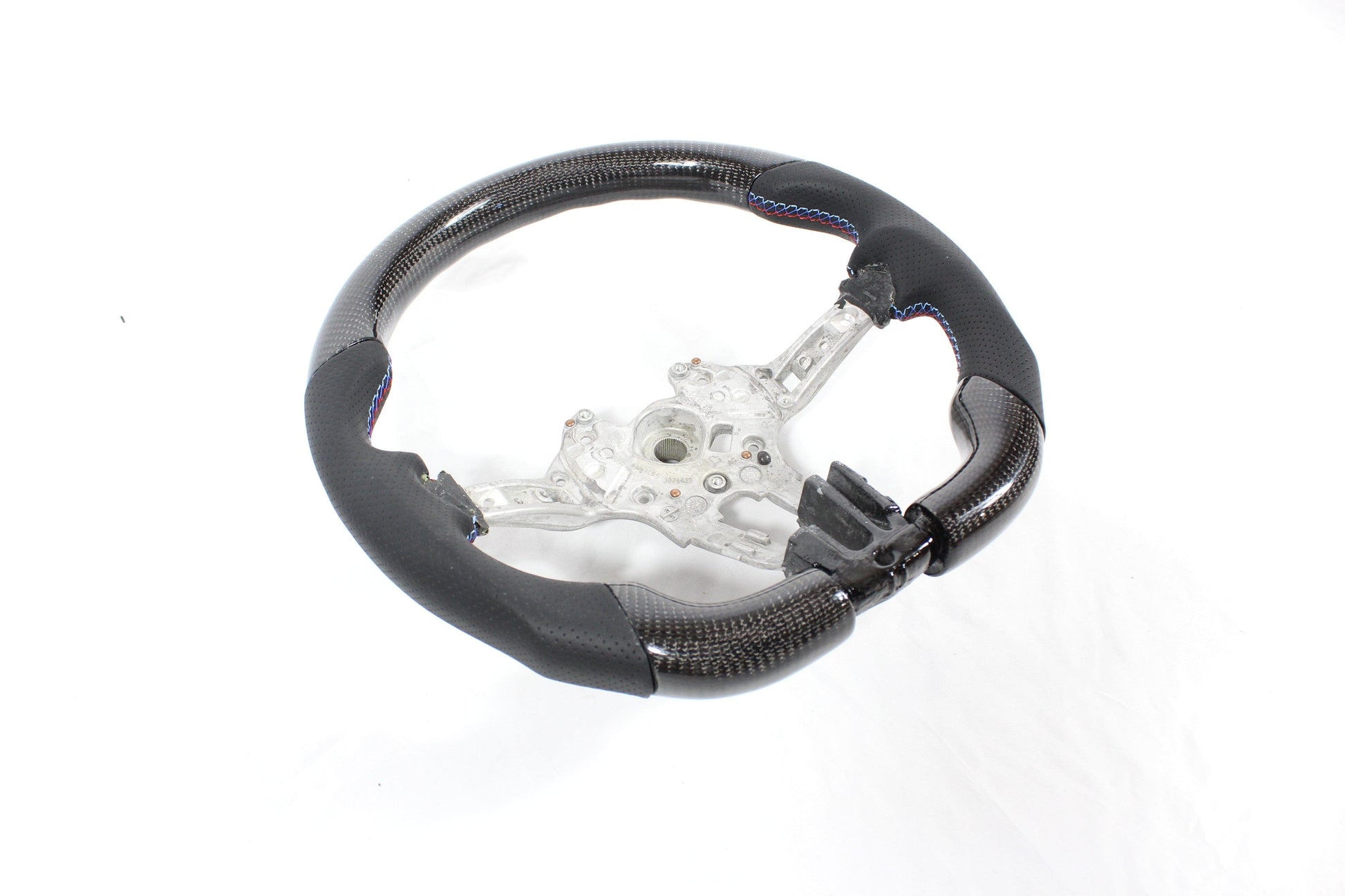 BMW F-Series steering upgrade. BMW F80 F82 F83 F87 wheel retrofit. BMW F30 F32 sport wheel. BMW M2 M3 M4 interior upgrade. D-shaped BMW wheel. Carbon weave BMW wheel. Performance steering for BMW F chassis. BMW X5M X6M steering upgrade. BMW 1 Series M Sport wheel. BMW 2 Series M Sport wheel. BMW 3 Series M Sport wheel. BMW 4 Series M Sport wheel. Carbon fibre BMW wheel UK. Carbon fiber BMW steering wheel. OEM-core steering upgrade. Motorsport-style BMW wheel.