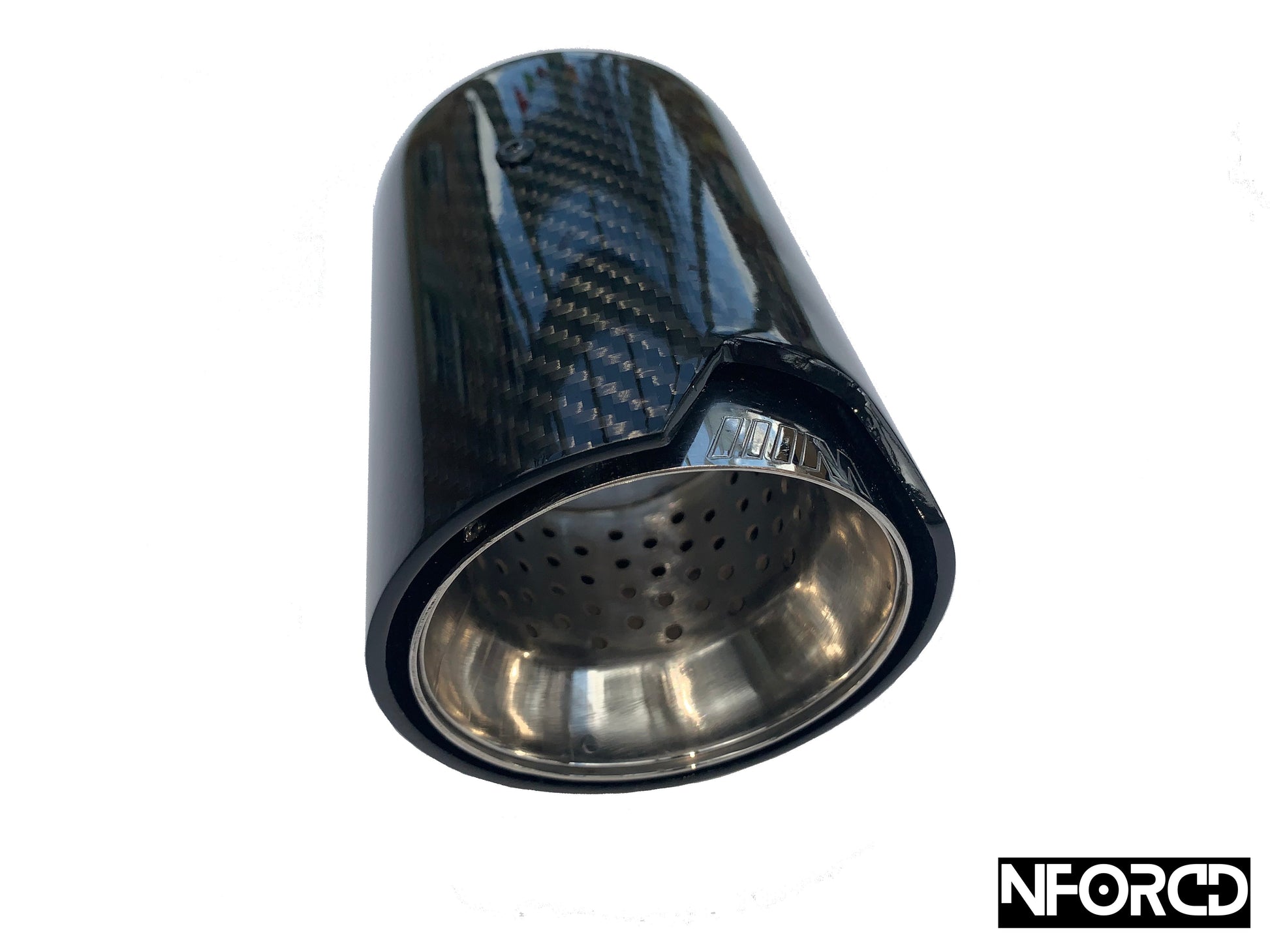 BMW tailpipe trims, carbon exhaust ends, BMW tip upgrade, slip-on tailpipe covers, carbon weave tips, silver inlet tips, BMW rear diffuser styling, quad tailpipe upgrade, performance tailpipe finishers, OEM-style tailpipe replacements, 63 mm tips, 67 mm tips, F-series BMW tips, G-series BMW tips, M look tailpipes, clamp-on exhaust tips, gloss carbon tips, forged carbon tips.