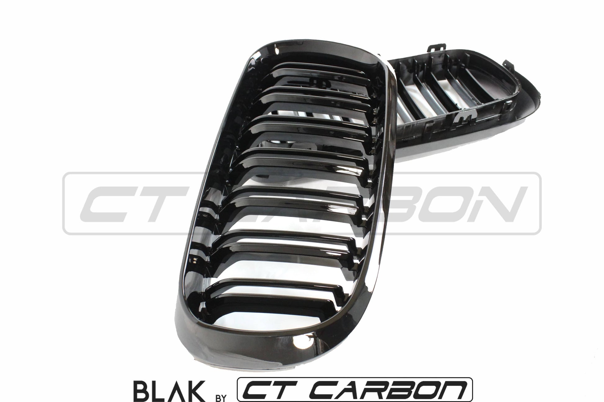 Elevate your front end with a stealth, motorsport-inspired kidney grille upgrade. This twin-bar black set from CT Carbon's Blak range replaces the factory chrome for a sharper, more aggressive look that instantly de-chromes your SUV and turns heads on every drive.