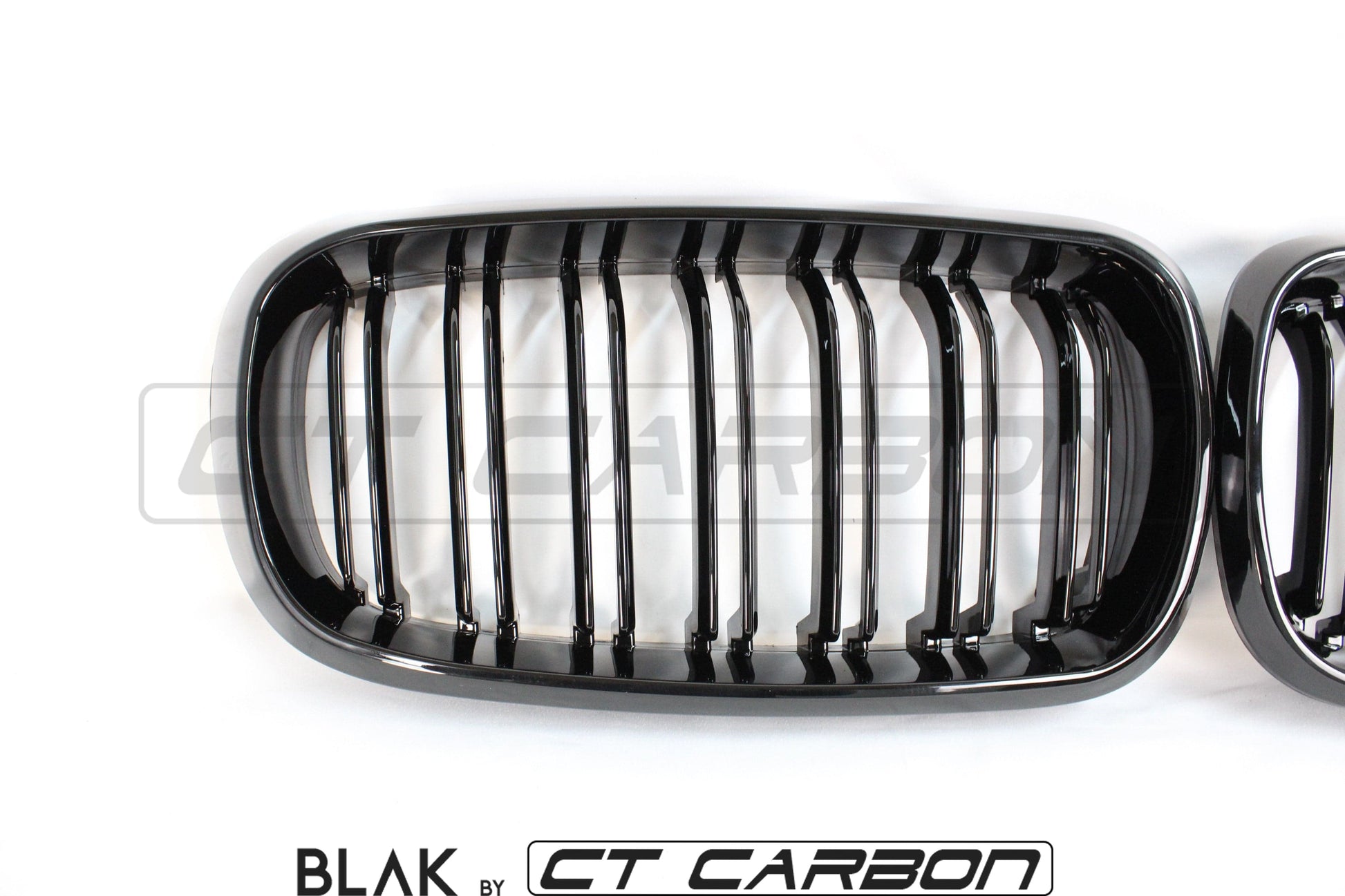 BMW X5/X6 F15 F16 Double Slat Kidney Grille/Grill Black – Fits X5M X6M & Non‑M – Twin Bar Front Radiator Grille Replacement Pair, Shadowline Dechrome Blackout – CT Carbon Blak