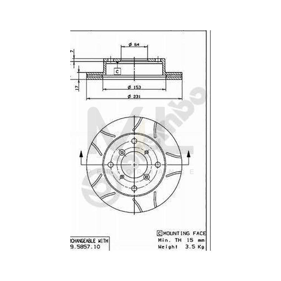 Brembo Max Line 09.5857.75 Slotted/Grooved Brake Disc Rotor - Vented, Coated, Anti-Corrosion - 231mm x 17mm - 4 Bolt/4 Stud, 4 Hole - OE Quality Direct-Fit Performance Brake Upgrade UK