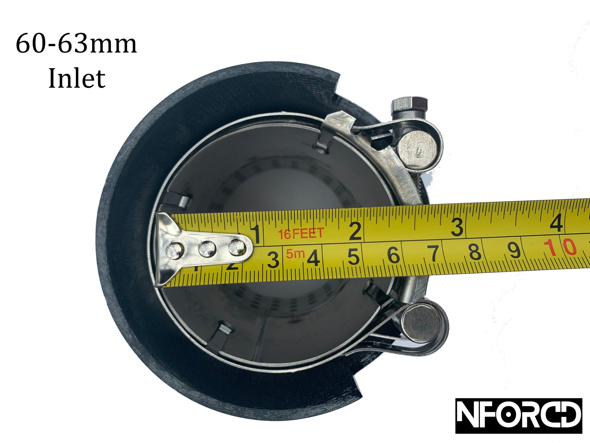 Simple clamp-on install. No cutting required when the correct size is selected. For quad setups order four pieces. For twin exit systems order two.
