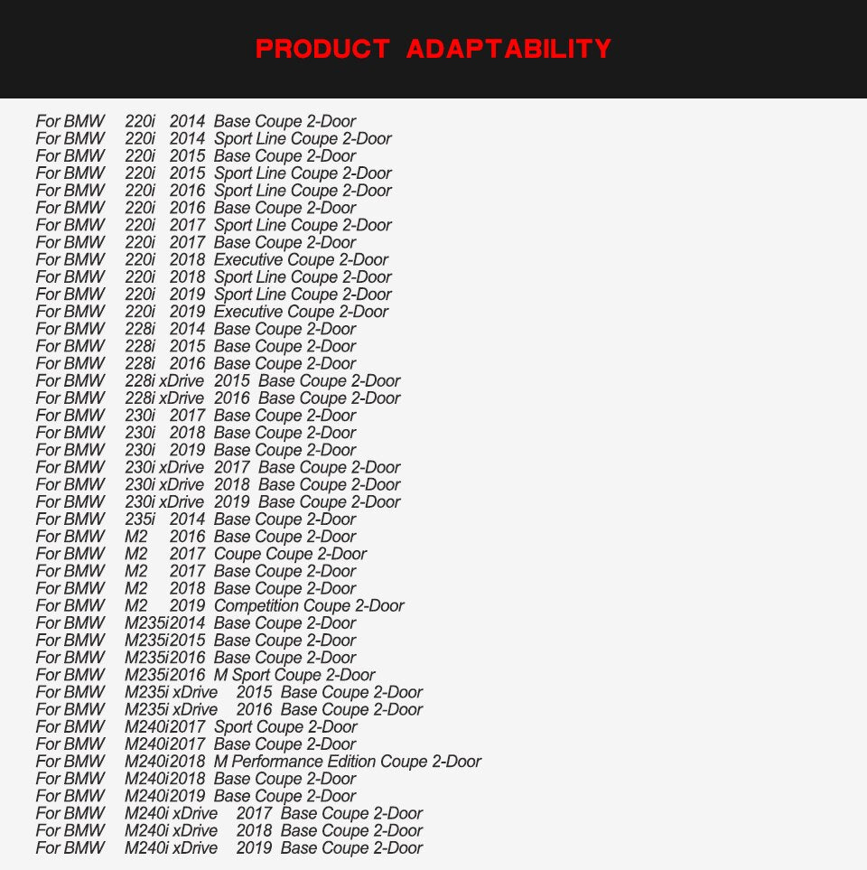 - Compatibility: BMW 2 Series F22 Coupe, F23 Convertible, F87 M2 and M2 Competition, model years 2014 to 2019, including M Sport variants