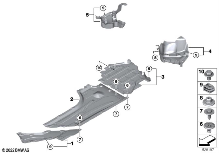 Right side equals offside on UK right-hand-drive cars. This piece is number 05 in the BMW underfloor coating diagram.