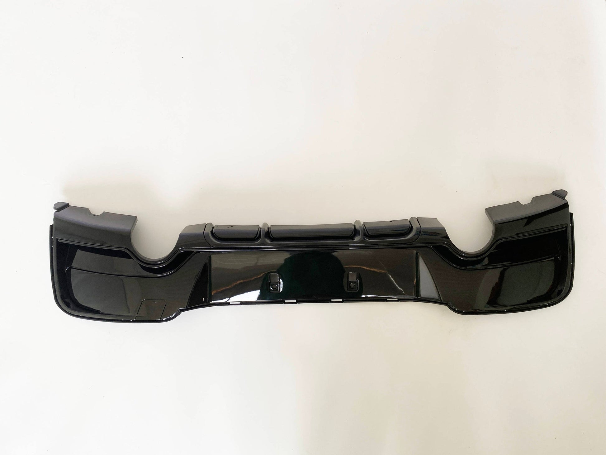 BMW F20 M135i rear valance, BMW F21 twin exit bumper insert, gloss black lower apron, dual outlet exhaust surround, rear bumper trim M135i, BMW 1 Series pre-facelift lower diffuser, twin tip bumper insert, 2011 2012 2013 2014 2015 F20 F21 styling, OEM style bumper valance, performance rear skirt, M135i twin exhaust trim, UK stock BMW body styling.
