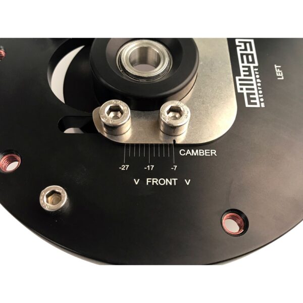 - Adjustment range approximately 27 mm - around 2.5 degrees more negative camber than factory