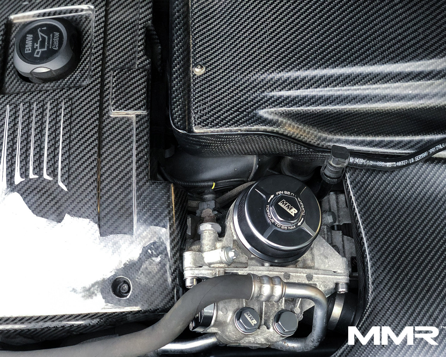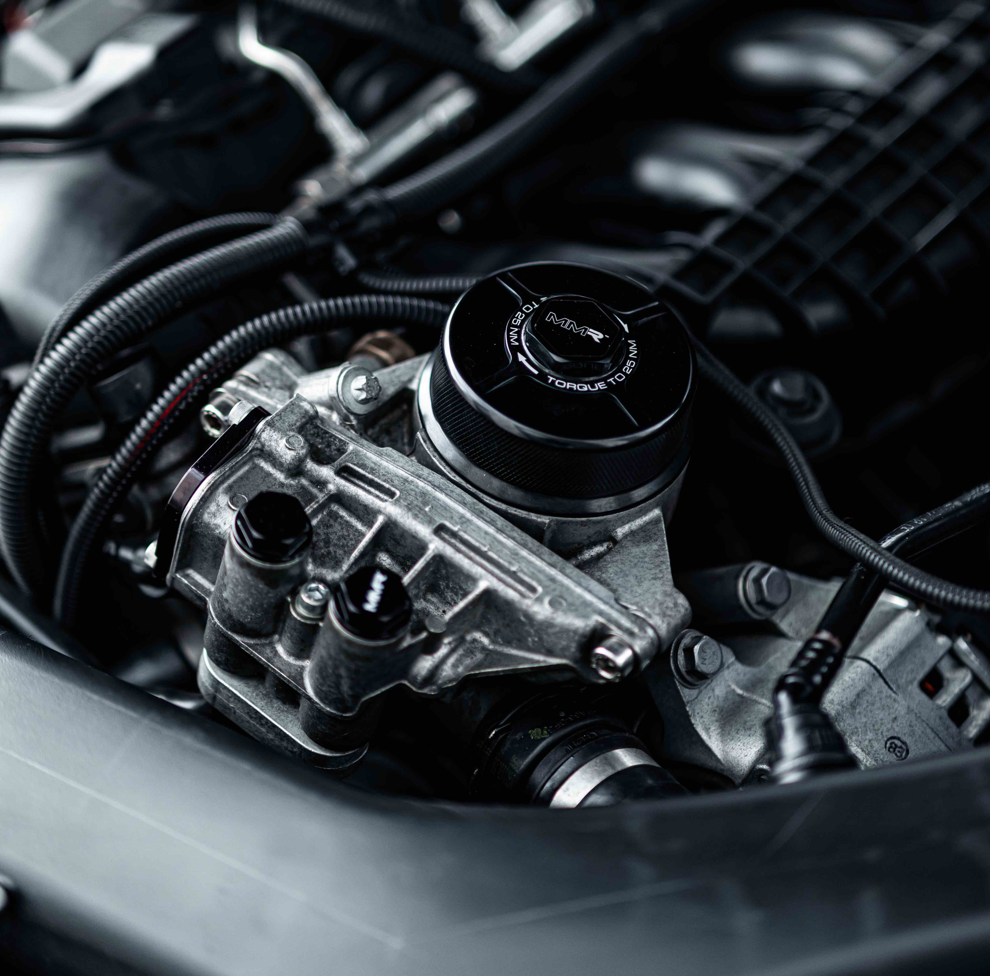 Give your turbocharged straight six the finish and reliability it deserves with this precision CNC machined aluminium thermostat housing cap from MMR Performance. Finished in deep black anodise, it replaces the fragile OE plastic top on the oil thermostat assembly to improve durability, resist cracking and sharpen the look of your engine bay.