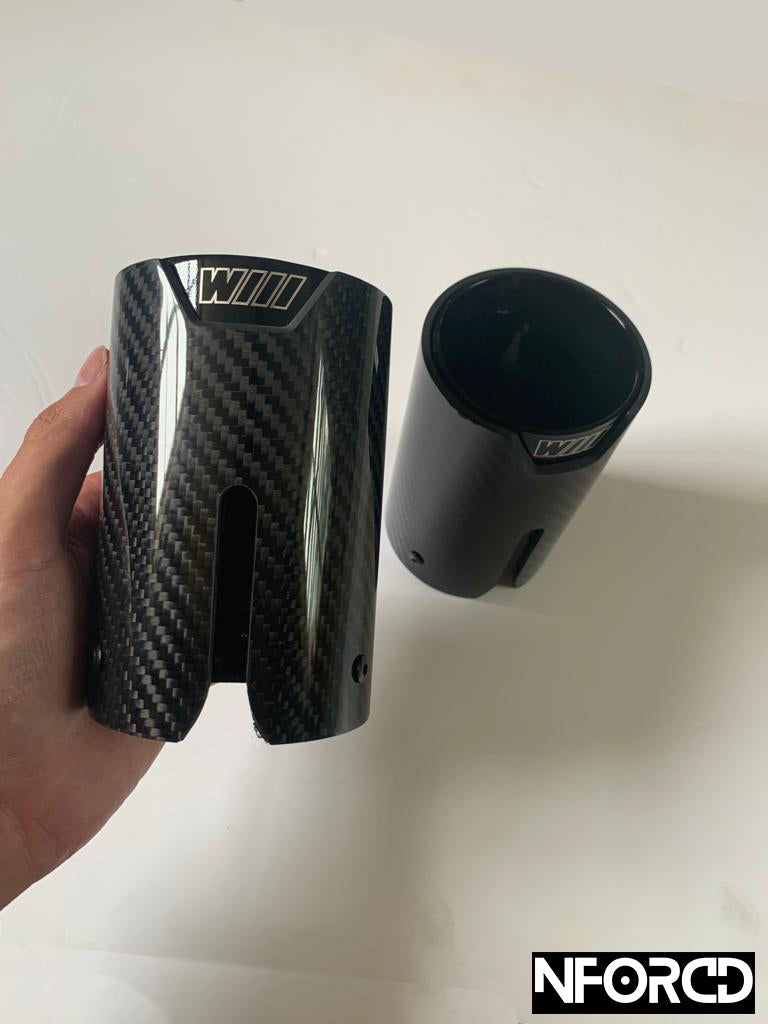 BMW tailpipe trims, exhaust tip finishers, dual outlet tip set, rear silencer tips, muffler end caps, M Performance style tips, gloss black tail pipe covers, carbon fibre tailpipe ends, F20 F21 F22 F23 F30 F31 F32 F33 F34 F35 F36 exhaust outlets, BMW 1 Series 2 Series 3 Series 4 Series tail pipe upgrade.