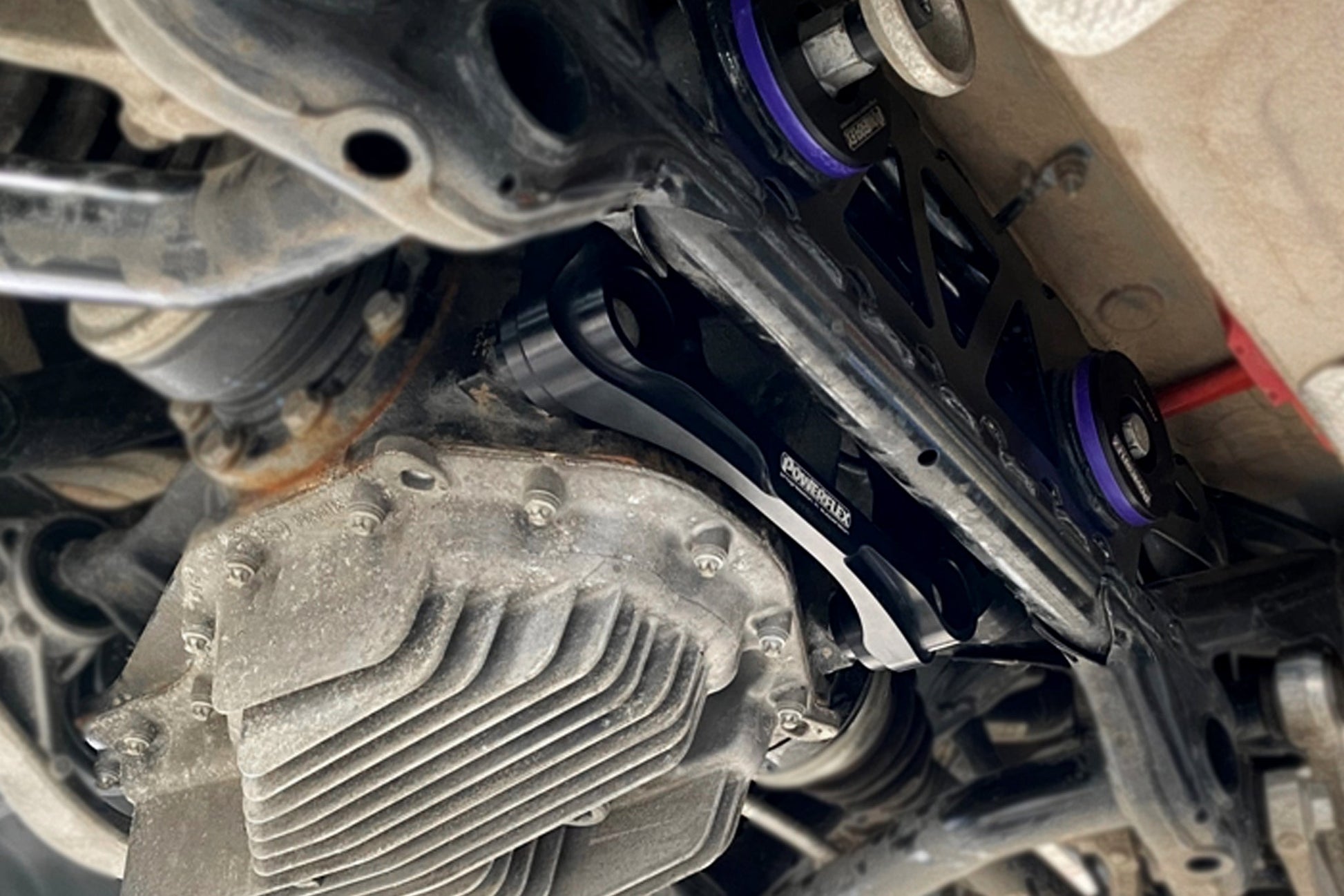 - Powerflex rear final drive bracket in satin black 6082 aluminium