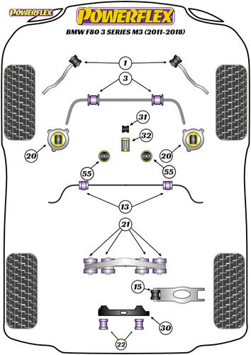 Powerflex Gear Shift Arm Front Bush Oval 26mm for BMW F80 M3 (3 Series) Shifter/Gear Selector Poly Bush PFF5-4631 Replaces 25117507695