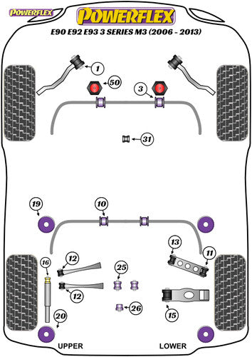 Powerflex Poly Bushes Pack Front Radius Arm To Chassis Bushes - E90, E91, E92 & E93 3 Series (2005-2013) - PFF5-401G