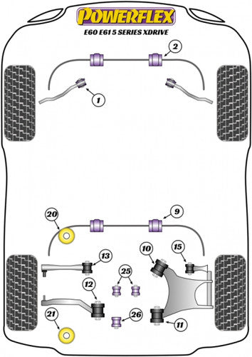 For BMW 5 Series E60 Saloon and E61 Touring with xDrive all-wheel drive. This insert fits the front position of the rear sub-frame where the OE mount corresponds to 33316770826. If you are seeking a full replacement bush rather than an insert, use Powerflex part PFR5-720.
